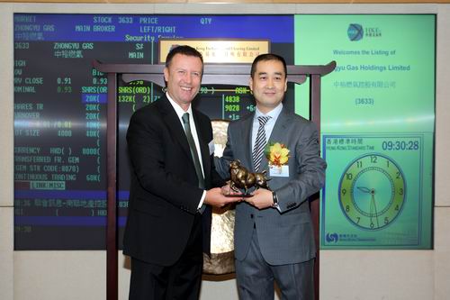 7月11日上午9:00,中裕燃氣在香港聯合交易所(以下簡稱港交所)主板上市,開始以新股份代碼“3633”進行股票交易。中裕燃氣董事局主席王文亮先生,港交所高級總監、上市推廣部主管藍博文先生、監察部主管簡嘉穎女士,中裕燃氣集團管理層及德勤會計師事務所等多家中介服務機構嘉賓六十余人一起參加了主板上市儀式,董事局主席王文亮先生親自主持了港交所開市敲鑼儀式。以此為標志,中裕燃氣在國際資本市場踏上了一個新的臺階。