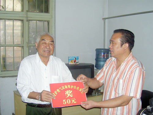 "焦作公司訊 9月15日,焦作公司副總經理邢衛東、鄭峰一行登門感謝舉報破壞燃氣設施者,并現場頒發獎品和獎金50元。