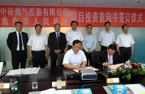 焦作公司訊 日前,焦作市委副書記、市長孫立坤,市委常委、副市長趙建軍,市政府秘書長李海松一行在香港同中裕燃氣高層管理人員交流會談,就進一步合作事宜簽署了相關意向書。6月10日,焦作日報于頭版對此進行了報道,現將全文摘錄如下: