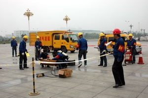 "濟源公司訊 7月16日上午,濟源中裕公司與該市電力、通訊、武警、消防等特種行業單位一道,參加了由當地人武部組織的全市應急搶險演練。