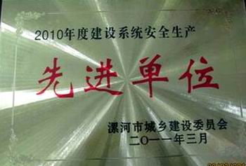 漯河公司訊 日前,在漯河市政府、市建委先后召開的安全生產工作會議上,漯河公司相繼被授予了“2010年度安全生產先進單位”、“建委系統安全生產先進生產經營單位”榮譽稱號。