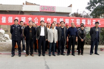 偃師公司訊 10月14日上午,偃師市顧龍公路燃氣輸配管網工程順利開工建設。龐村鎮鎮長郭海濤、副書記張俊龍、副鎮長張冠軍,承建單位偃師中裕燃氣有限公司總經理段區高及施工單位負責人參加了開工儀式。至此,顧龍公路管道燃氣工程進入了實質性的進展階段。