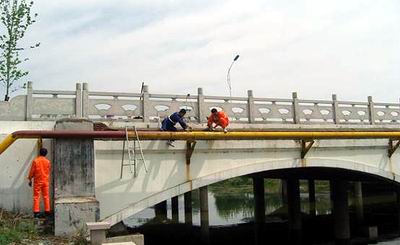 期間,針對架空管道排檢、維護過程中存在的無專業維護人員、無高空作業設施、無專門除銹及噴漆設備等困難,臨沂中燃公司員工在嚴格貫徹落實"安全第一、預防為主、厲行節約、綜合整治"方針的前提下,抽調巡線及門站工作人員,自己動手對輸配管網系統中的架空管道、門站露天設備等進行了全面除銹防腐工作,有效提高了設備的耐腐蝕性和安全運行的可靠性,大大延長了設備的使用壽命。