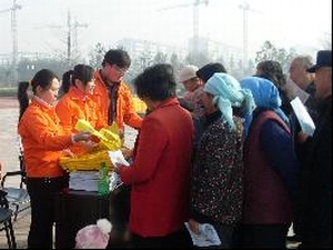 群眾排隊領(lǐng)取宣傳品及安全手冊