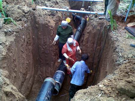 "他們是“西二線”工程的建設者們,每天,當我們坐在窗明幾凈、開有空調的辦公室時,他們卻在炎炎烈日的暴曬下忙碌的加緊施工。若不是親眼所見、親身體會,我不會注意更不會知道這些奮戰在施工一線隊員們的辛苦。就在幾天前的一個周末,我隨西二線工程施工人員來到了緱氏門站的施工現場,那場景至今歷歷在目: