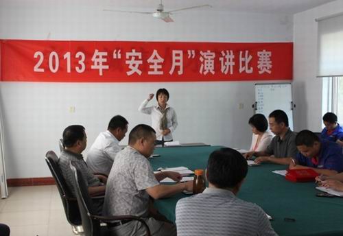 永城公司訊 6月是全國安全月,為了深入開展安全生產宣傳,營造濃厚的安全文化氛圍,提高全體員工的安全生產意識,預防和減少安全事故的發生。13日下午,一場以“安全、責任、幸福”為主題的安全月演講比賽在永城公司二樓會議室舉行。永城公司總經理郭穎靈及公司領導班子成員組成評委會對比賽進行了評判。