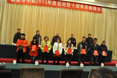 新密公司訊 2013年12月30日晚,“新密中裕2013年工作總結(jié)會議暨10周年慶典晚會”在魯班喜悅酒店三樓多功能廳成功舉辦。