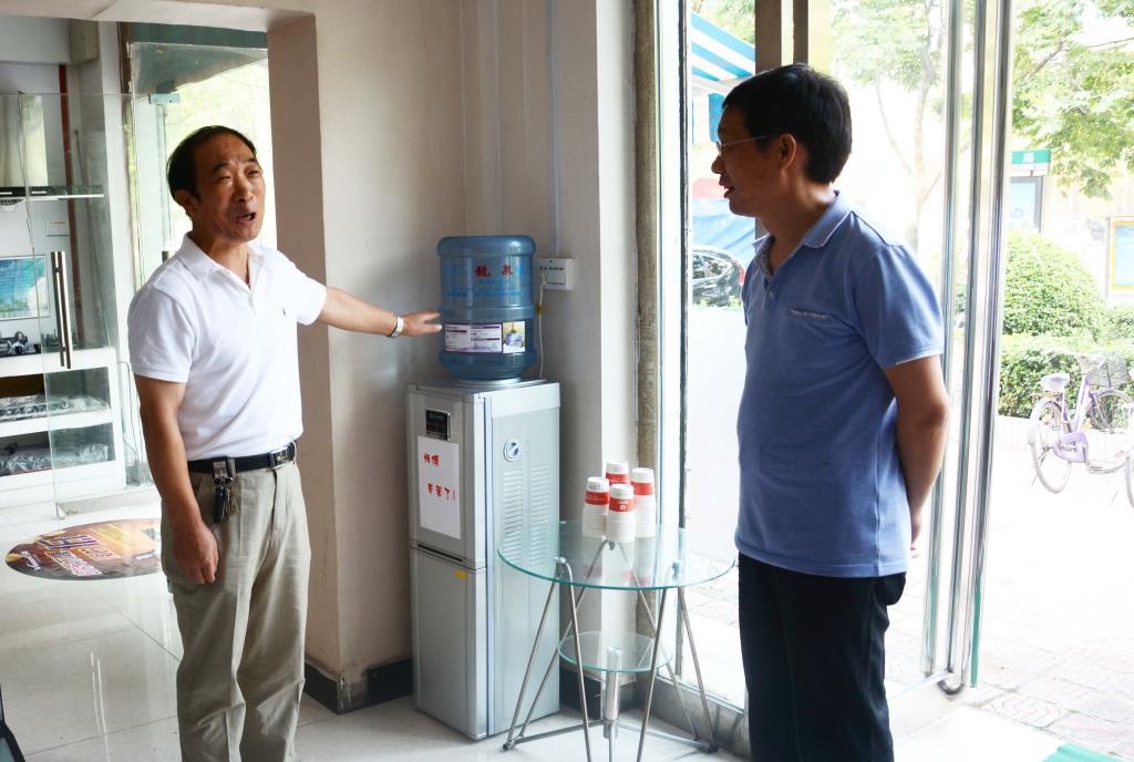 揭牌后,史主席走進(jìn)營業(yè)廳,恰遇正在接水喝的環(huán)衛(wèi)工人張大娘,她高興地說:“這里面服務(wù)好又涼快,我們干活累了的時(shí)候都能夠到這兒來歇會兒、喝口水,解解乏,真不賴。”