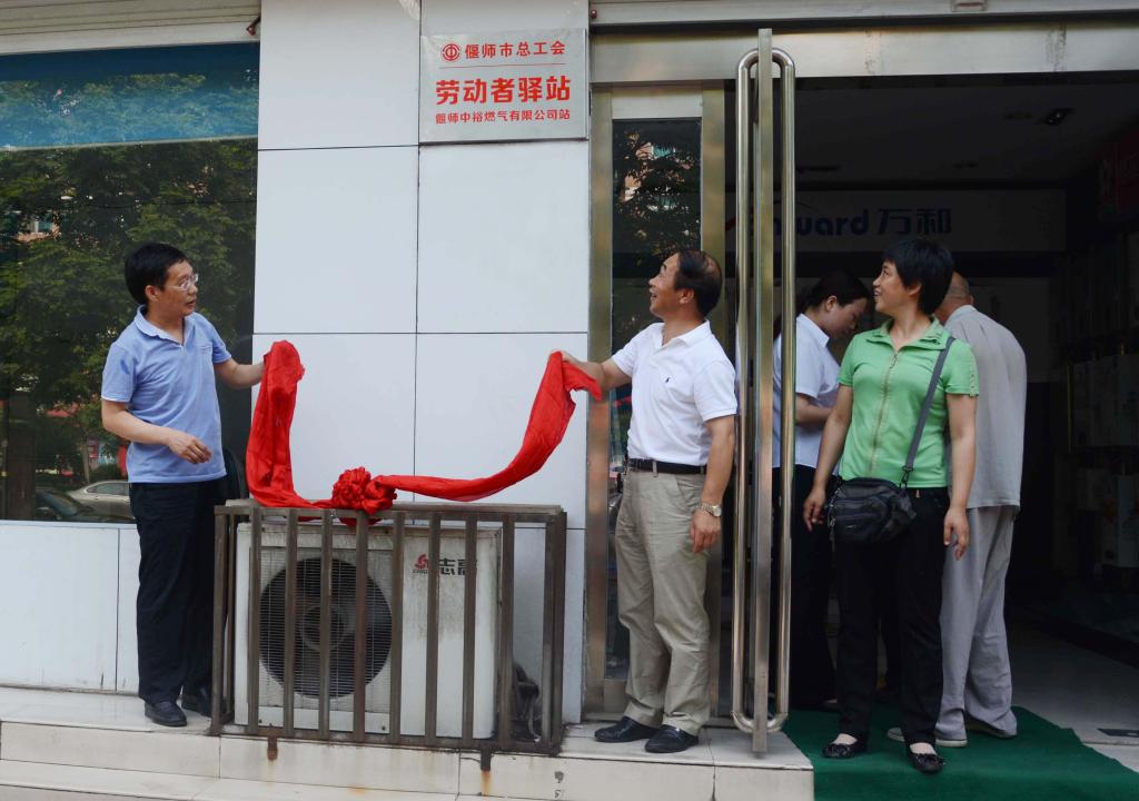 市總工會主席史書通(左一)和段總為“勞動者驛站”揭牌