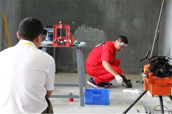 期間,來自全省17個地市的68名參賽選手分調壓工、安裝維修工2個賽項進行了角逐,考核成績由理論和實踐兩部分組成。調壓工實操要求參賽選手在70分鐘的限時內對整臺調壓器進行檢查,并完成對主調器切斷閥的拆裝保養(yǎng)維護及組裝調試、工作原理圖繪制等操作;安裝維修工實操要求參賽選手在100分鐘的限時內按照給定的墻面圖,設計燃氣管道安裝圖,提出材料表,完成管道下料組裝、壓力試驗等操作。