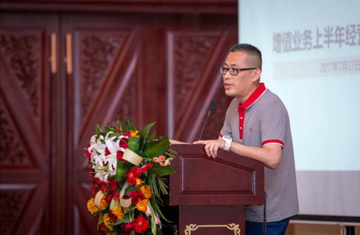市場客服部副總經理湯萌做《增值業務半年分析報告》