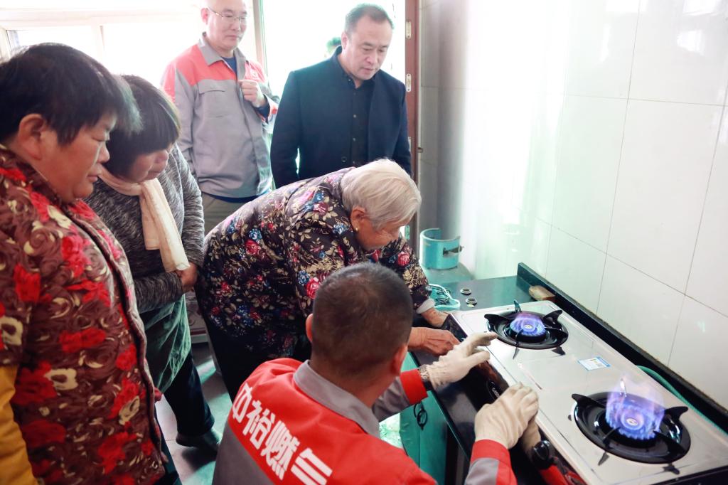 為保證16日順利點火試燒,焦作公司安全管理人員提前一天在該村進行天然氣安全知識宣傳。主要針對已申請并安裝到位的112戶天然氣用戶進行安全用氣常識的介紹和宣講。多數農村居民首次使用天然氣,安全意識薄弱,加強宣傳教育是提高農村居民安全用氣意識、掌握安全常識的重要手段。點火當天,公司組織市場開發、客戶服務、安全監察部等相關部門在侯卜昌村委會外設宣傳臺,利用多功能宣傳車播放安全用氣宣傳片,展示增值業務產品,挨家挨戶走訪巡查。焦作中??偨浝硇闲l東親切到訪村民家中指導點火試燒,要求用優質服務保障村民用氣安全。